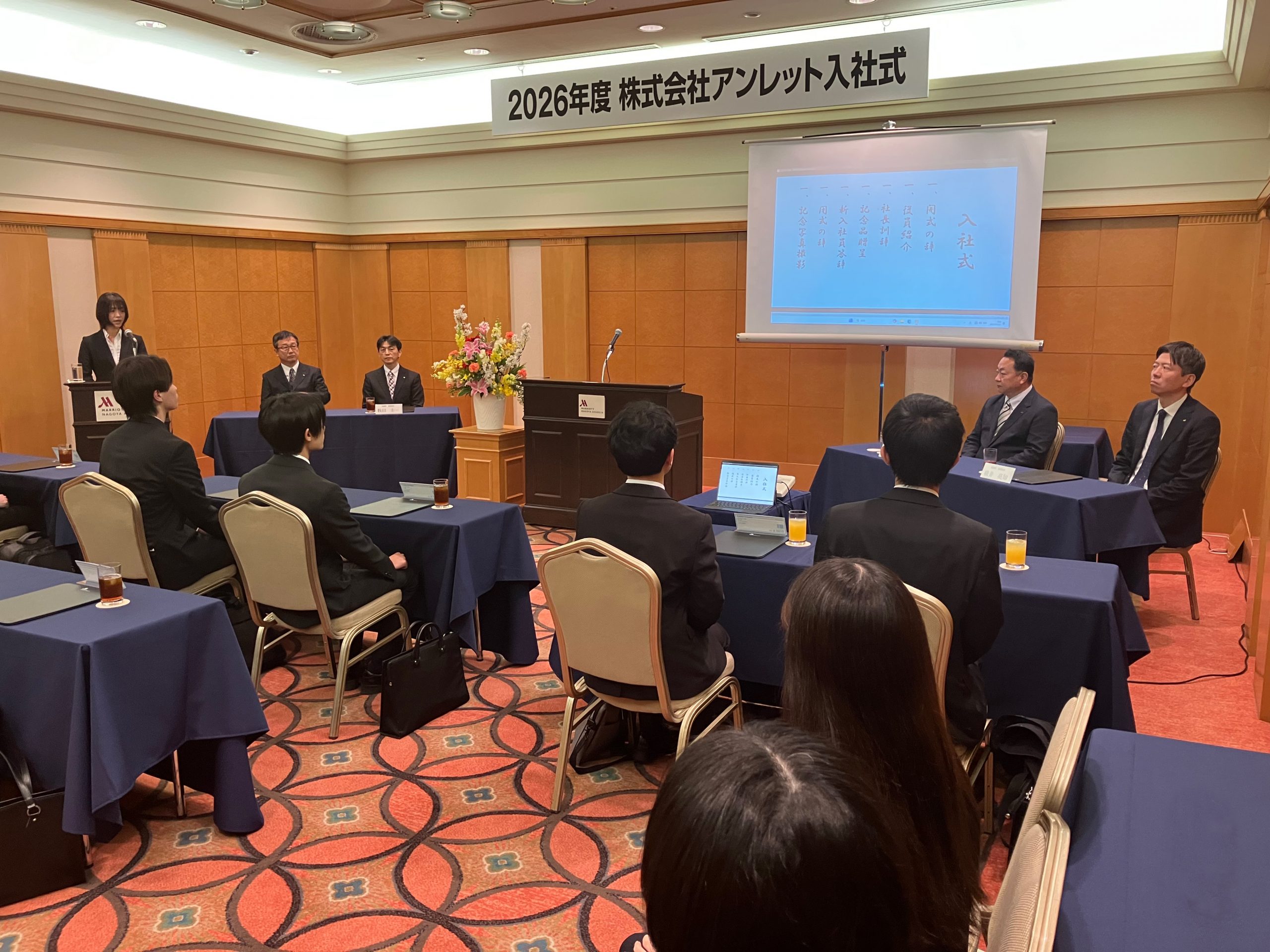 2026年度は8名の新入社員を迎えるとともに、社会人としての第一歩を踏み出す皆さんの門出を祝いました。